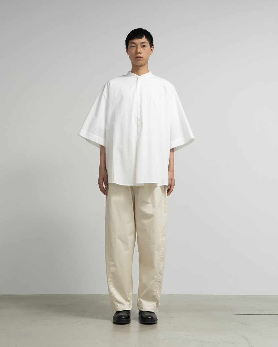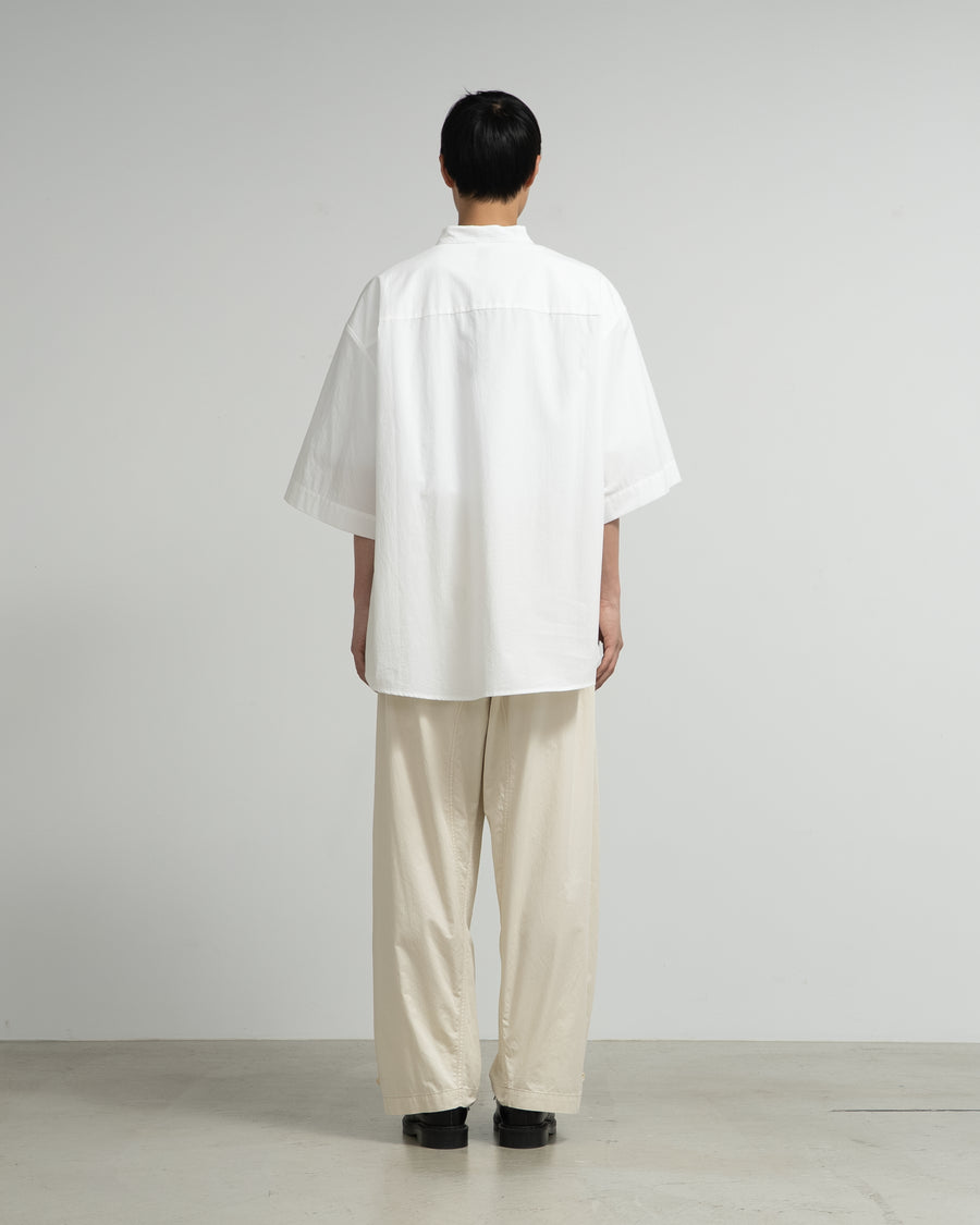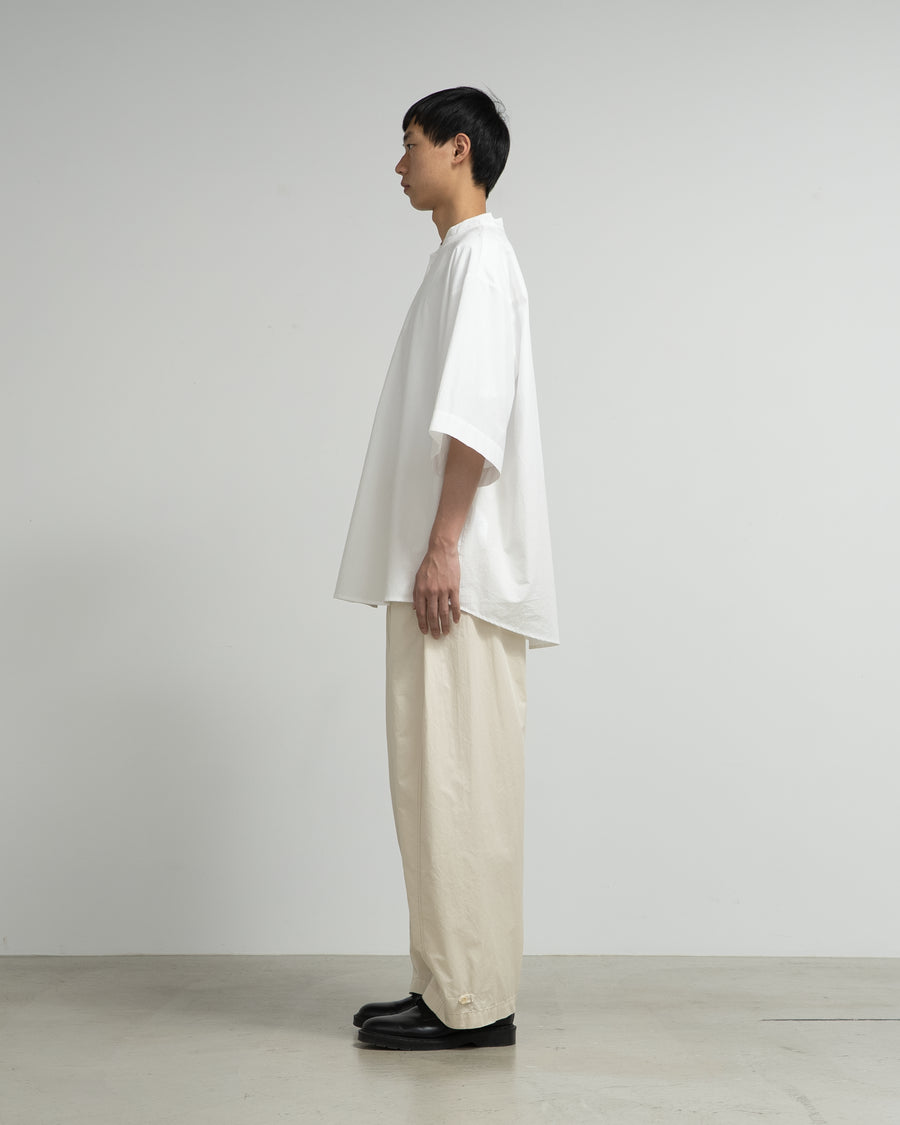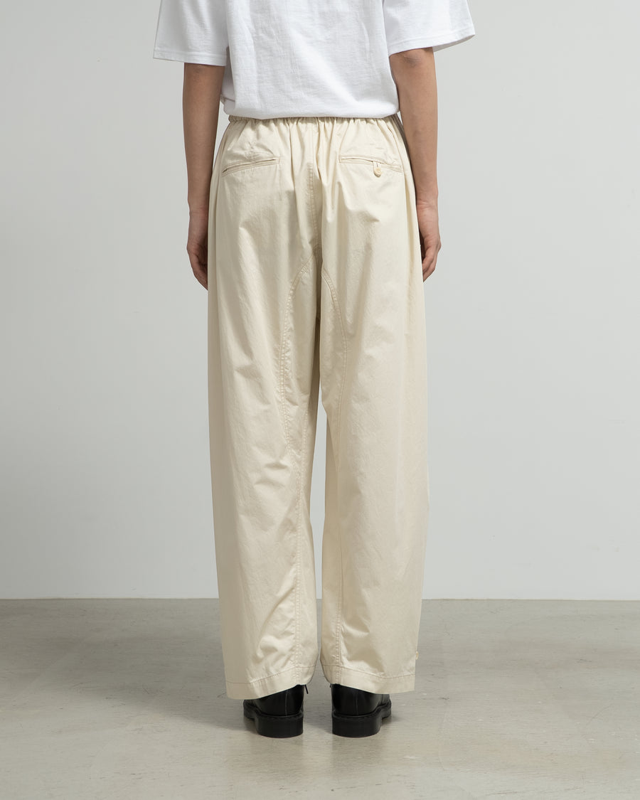 柔らかな肌触りと控えめな光沢感が特徴のコットンサテンを使用したオーバーパンツ。前面に施された独特なツイストにより、モダンなシルエットと個性的なスタイルを両立。裾周りに施されたボタンでシルエットの変化を楽める一本。